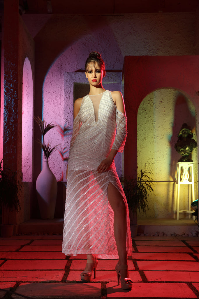 Our couturiers craft pieces with patience and great skill, and impart the sensitivity and outstanding expertise. With a lookout for craftsmanship, along with artisan duties. Each ensemble is hand stitched in India, making them timeless and ageless. With an evocative history of quality of fabrics and fabrication.